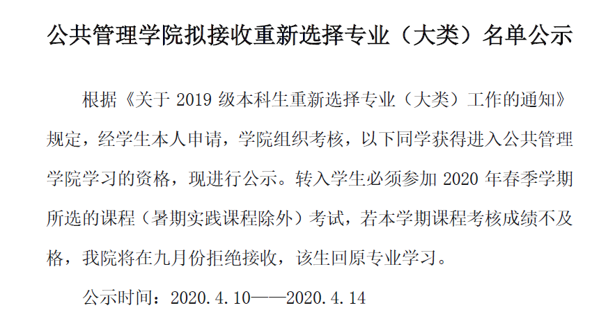 韩国三级 拟接收重新选择专业(大类)名单公示