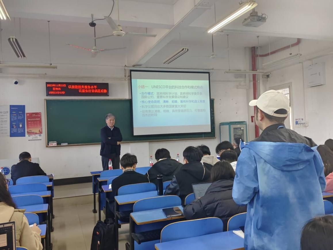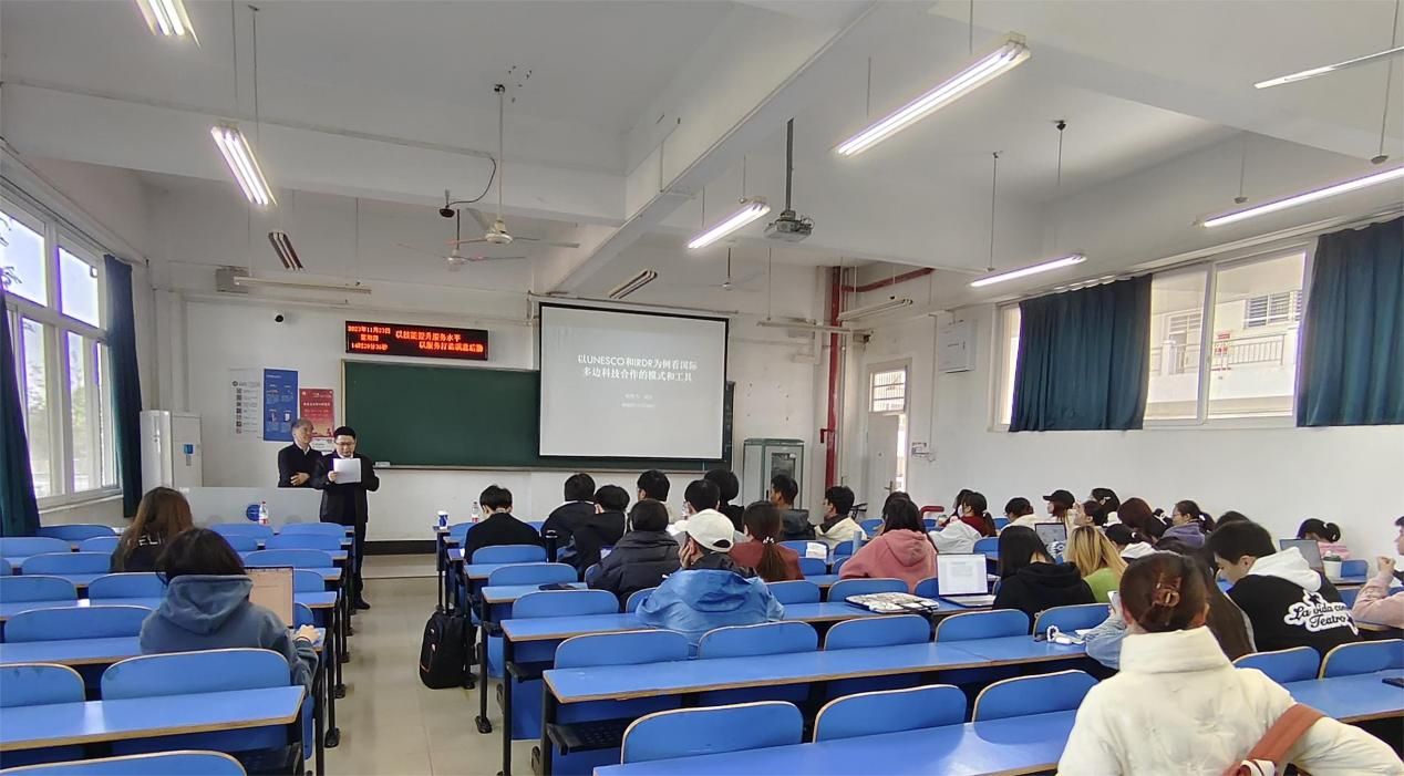 第二期“全球胜任力”人才培养工作坊。本次讲座主题为“以UNESCO和IRDR为例看国际多边科技合作的模式和工具”,学校教师代表以及部分博士生、硕士生、本科生在北区综合教学楼209聆听报告讲座。讲座由 韩国三级