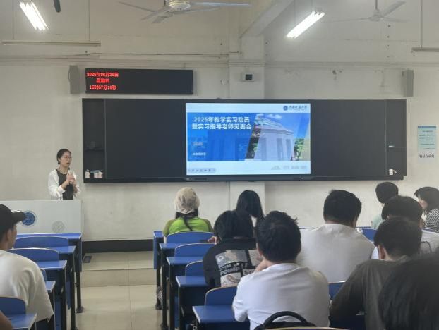 首先,苏黎兰老师向23级同学详细介绍了教学实习的实习计划。她从实习的时间安排、实习地点分配、实习内容、考核评价等方面展开详细讲解,明确实习周期及阶段性任务,明晰实习全流程要求,让同学们对即将开展的实习工作有了清晰的认识。随后,向22级同学们介绍了毕业实习的相关注意事项,重要时间节点等内容,尤其强调在实习过程中要提高安全意识,确保自身安全,为实习的顺利开展筑牢安全防线。