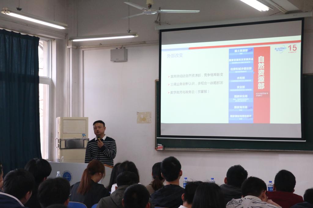 党委副书记胡文勤、南方数码北方总部总经理范铀、副总经理韩志华、部门经理徐兆祥、项目经理李俊杰、人事专员胡岚出席了宣讲会,共有学校公管、计算机、经管、信工等多个学院的100余名同学参加了此次招聘会。