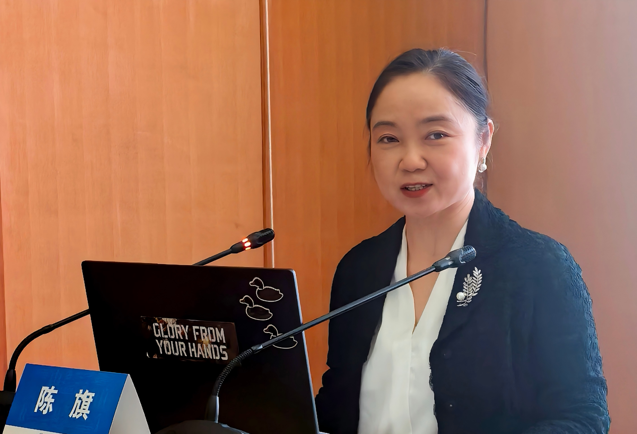 湖北省高级人民法院党组成员、副院长陈旗致辞。她提到,青年学者是环境法学的希望所在,应站在人类文明高度去考量环境法学问题,同时在宏观和微观层面上不断探索,在生态环境法典编撰的时代,找到个人事业与人生的应许之地。